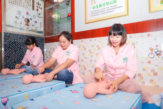 学完两门课程后,黄素琴在老师的引荐下,靠着自己在南宁金职伟业学来的知识,顺利进入了金职伟业旗下的南宁金婴丽人门店,开启了自己的小儿推拿生涯。对于自己现在从事的小儿推拿职业,黄素琴感到满意:“在我看来,如果进入传统行业,收入会比现在的职业低。小儿推拿的收入是很可观的,市场也是很大的。”