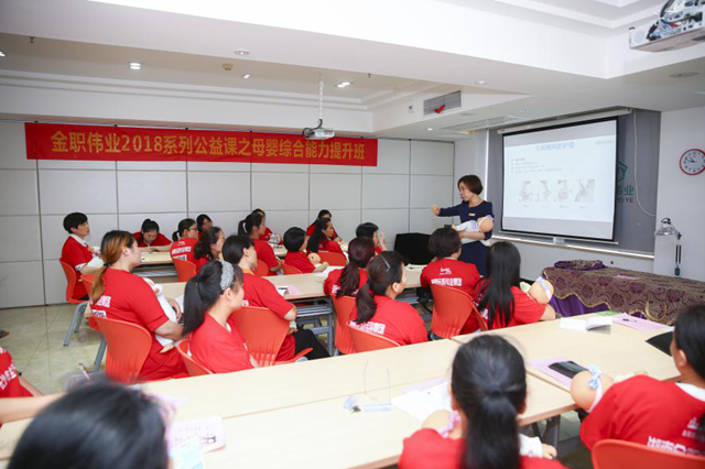 上午9时10分,随着金职伟业《金职梦想起航 共创辉煌伟业》企业宣传片的音乐响起,本期母婴综合技能公益课的开班典礼拉开帷幕。