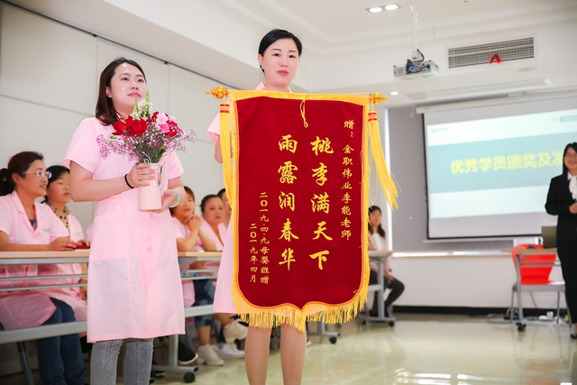 在收获真挚感情的同时,陈银英也收获了丰富的知识。“因为自己本身就很喜欢宝宝,来这里学习了母婴护理后,感觉自己更专业了,也让自己爱心爆棚。”勤奋好学的陈银英通过自己的努力,获评金职伟业297班母婴护理师班“优秀班干部”。