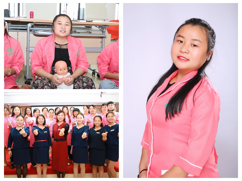 我性格开朗大方,16岁从郴州出来打工,在深圳工作4年,从普通工人到品质主管,之后2014年在惠州西餐厅工作,2015和同学合伙开了家早餐店,之后来学习月嫂。