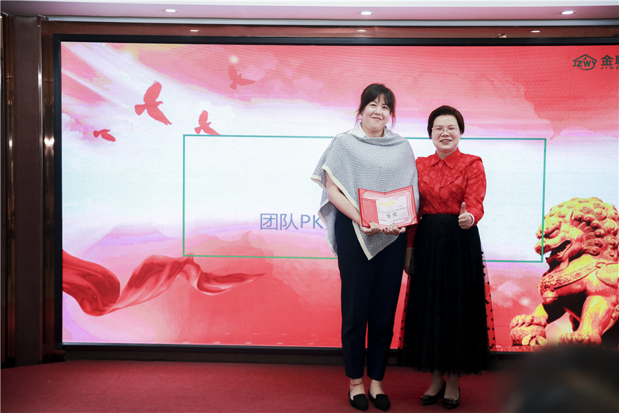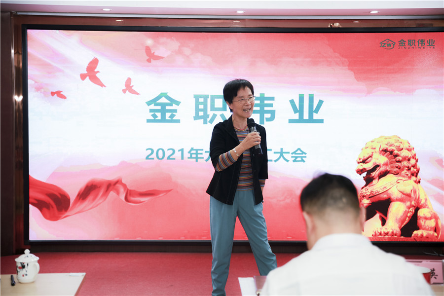 团队展示结束后,金职伟业特聘专家敬晓青进行致辞,她主要从感恩、感谢、奋斗三个方面进行分享,同时她希望大家能夯实自己的职业基础,加强团队协作,发挥团队精神,互补互助以达到团队最大工作效率,不断为金职伟业的蓬勃发展添砖加瓦。