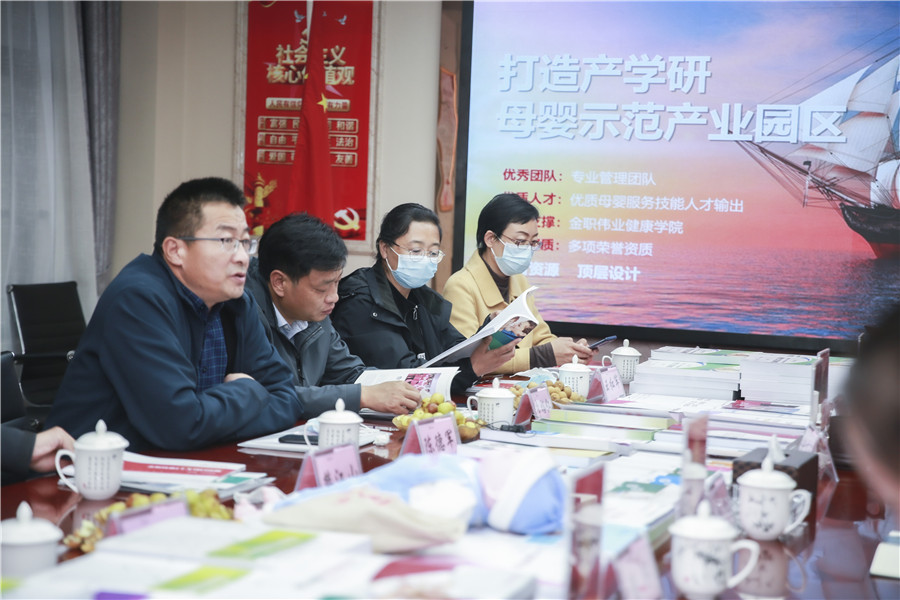 为进一步加强校企合作,深化教育教学改革,全面推进1+X幼儿照护职业技能等级证书试点工作高质量发展,10月29日下午,新疆生产建设兵团第八师教育局(石河子市教育局)教育干部王红军、第十一师职业技术学校校长陈德军、第五师职业技术学校副校长马良、第十三师职业技术学校副校长郝红艳、第十师北屯职业技术学校副校长樊江山、第六师五家渠职业技术学校副校长陈明阳、第十二师职业技术学校副校长朱伟、第三师职业技术学校副校长蔡强,塔里木职业技术学院副院长李裕仁,铁门关职业技术学院副院长王新国等莅临金职伟业进行考察交流,金职伟业总经理潘建明、市场总监周该生等陪同接待。
