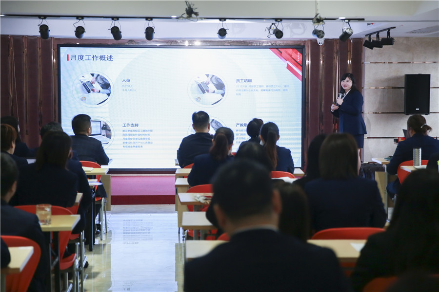 随后,综合部、市场部、外联部、发展事业部、直营门店及门店运营部、品牌运营及商学院各部门负责人,依次上台进行汇报,既总结了十月所取得的成绩,又对十一月的工作进行了部署与指导。与此同时,各部门员工代表围绕公司发展历程,联系岗位职责,结合工作及生活实际,分享了深刻感悟。