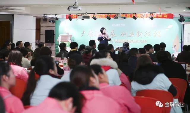 会上,首先由金职伟业董事长彭英女士致欢迎词,并作金职伟业2017年度工作汇报。她代表金职伟业对各位领导和嘉宾的到来表示热烈欢迎和衷心感谢。2017年,金职伟业在母婴职业培训、母婴健康服务、研发创新等方面的努力获得了业界的肯定,荣获了“湖南省家庭服务职业培训省级示范基地”、“高校毕业生最佳用人单位”、“长沙市创新创业带动就业示范项目”等荣誉,而荣誉只代表过去,新的挑战正在等待着我们。对于今后3年的发展,金职伟业的目标是——开设100所母婴职业培训分校和500家一站式母婴健康服务体验馆。她表示,母婴健康是前途远大、前景广阔、大有可为的事业,金职伟业人必须坚守这个梦想,才能将“让千万妇幼老实现健康幸福生活”的使命践行到底,才能造福于千千万万产后妈妈和宝宝。