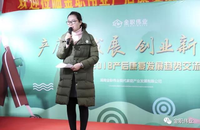 湖南省家庭服务协会秘书长杨飞女士发言表示,金职伟业以企业公民的身份,帮助众多中小型创业者成功创业,帮助需求人士成功就业,这种集母婴培训与服务于一体的商业模式不仅契合未来母婴行业发展大趋势,也符合我国实施精准扶贫、实现共同富裕的全民目标。