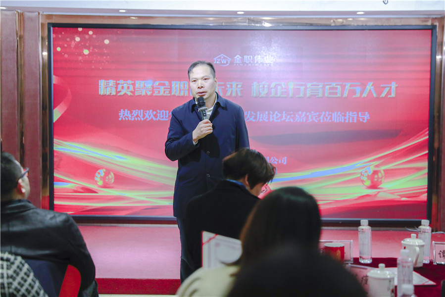 “幼儿照护职业技能等级证书是托育托幼领域的第一张1+X职业技能等级证书,自2020年至今已有近十万人考取幼儿照护证书。我期望,各企业对获得幼儿照护证书的学生能在工资、福利、待遇等方面给予优先考虑,为其敞开就业创业的大门。”会议伊始,金职伟业董事长彭英率先致辞,对在座院校、行业专家表示热烈欢迎,分享了国家在职业教育与托育人才培养方面的政策及动向,并强烈号召托育行业一线专家加入到人才培养的工作中来,“根据国家托育市场发展情况,到2025年,我国将有近四百万个托育缺口,托育人才的大力培养成为重中之重。未来,我们真诚地希望各位行业同仁能参与进来,成为金职伟业产业学院的导师,共同探索、思考,多措并举推动托育服务行业人才的培养建设,为我国托育行业的蓬勃发展贡献力量。”