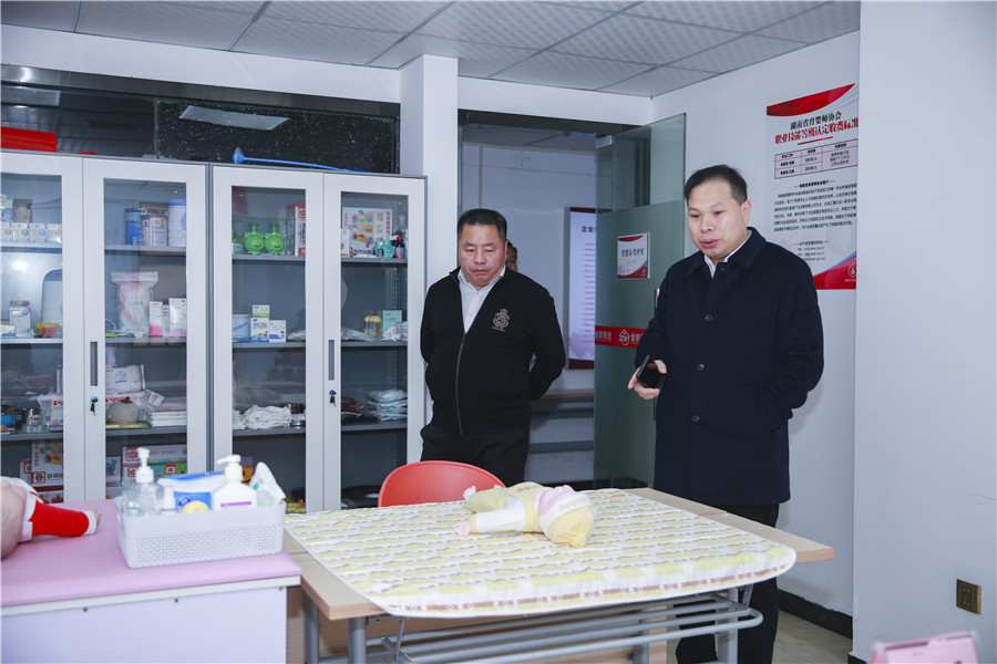 为加强沟通交流,找准合作契合点,1月13日上午,丰诚集团广东丰祺文化投资有限公司董事长廖俊琪,长沙市嘉禾商会会长黄道勇一行莅临金职伟业考察交流,在金职伟业总经理潘建明的陪同下,廖俊琪一行先后参观了金职伟业运营总部、金职伟业职业培训学校、旗下金婴丽人直营门店,实地考察了金职伟业各项业务工作。