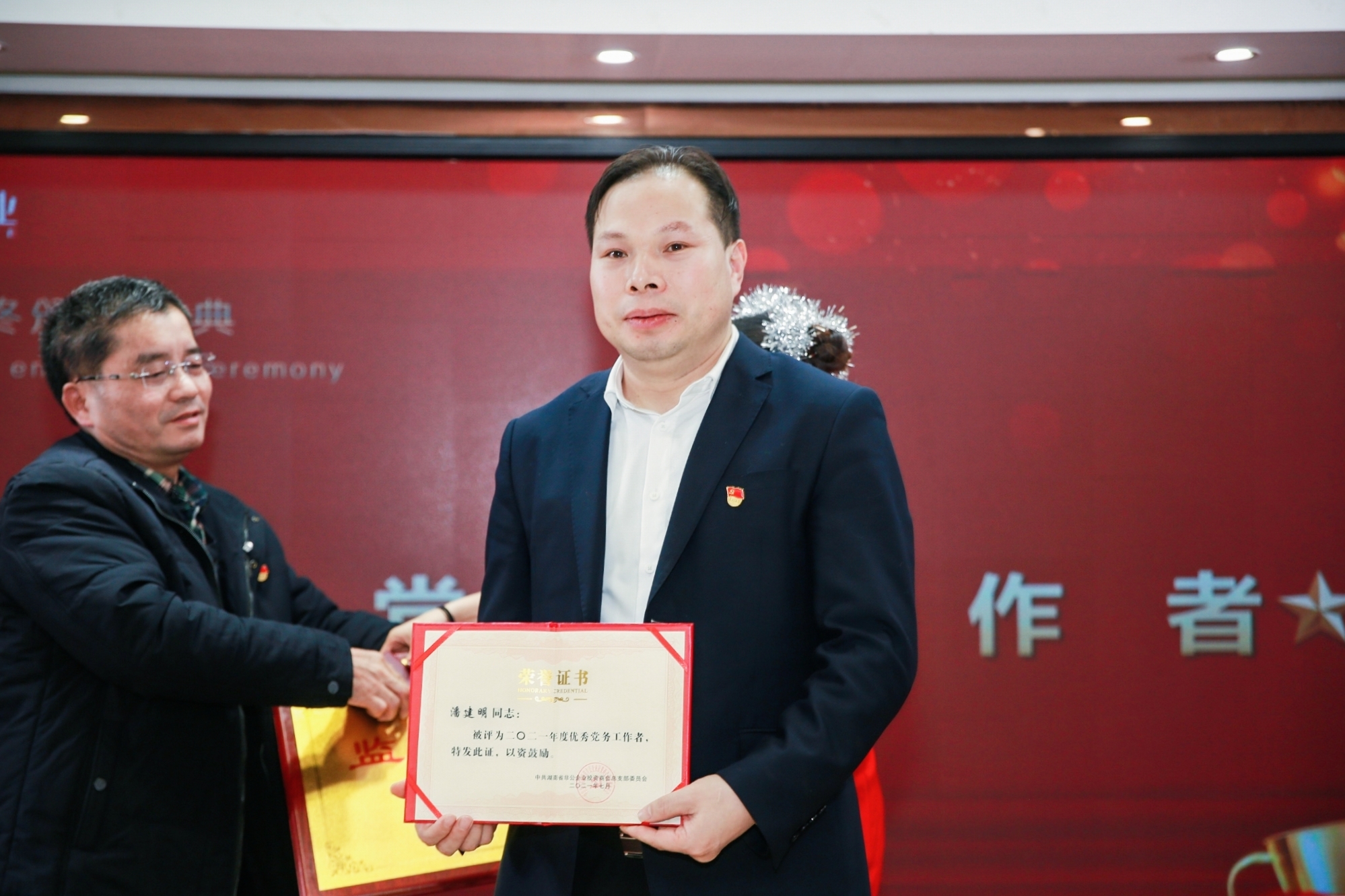 值得一提的是,会上,湖南省工商联商会协会党委委员、湖南省非公企业投资商会党委书记李国辉,为金职伟业集团有限公司颁发“湖南省优化经济发展环境监督测评点”牌匾,为金职伟业总经理潘建明颁发“湖南省优化经济发展环境监督测评员”“优秀党务工作者”荣誉证书,这不仅是对金职伟业的肯定,更是又一份沉甸甸的责任和使命。
