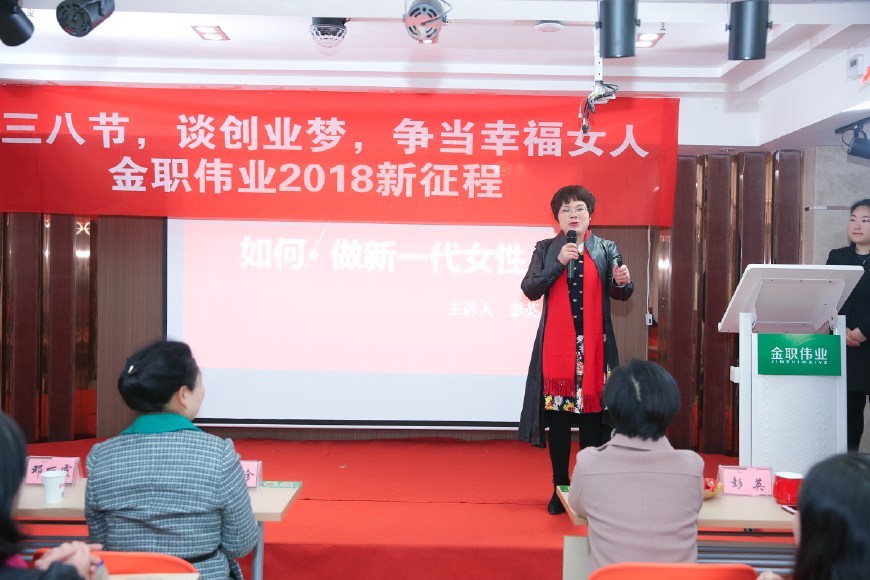 活动伊始,金职伟业董事长彭英女士做了主题为《如何做新一代女性》的分享。彭董讲述自己从一个贫困家庭经历丧父之痛后,自强自立、努力拼搏成长为优秀企业家的经历。彭董还传授给女同胞们“成功女性的十字箴言”——坚持、拼搏、诚信、创新、感恩,勉励大家努力奋斗,成为成功女人,成为幸福女人。彭总的创业经历,让在场女性学员得到了极大的鼓舞。