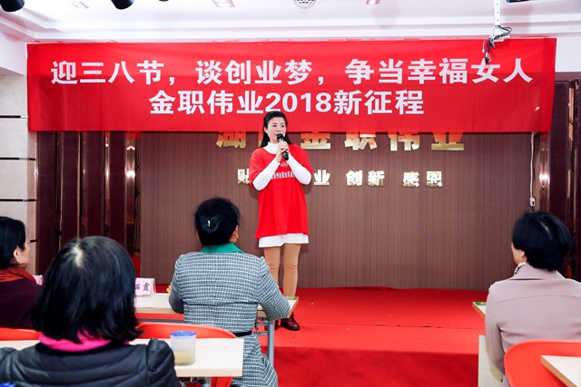 为迎接即将到来的国际妇女节,引导女性树立正确的职业观,3月7日上午,由长沙市妇联、香樟路社区主办的“迎三八节,谈创业梦,争当幸福女人”活动在湖南金职伟业现代家庭产业发展有限公司(下简称金职伟业)创业孵化基地隆重举行。
