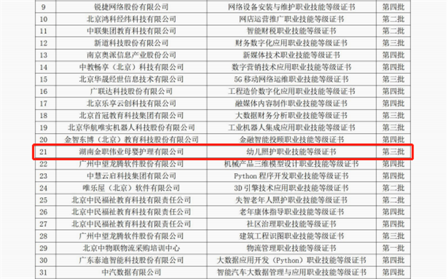 作为湖南省发改委认定第一批拟建设培育产教融合型企业,1+X第三批、第四批职业教育培训评价组织,金职伟业从“1+X证书”“教材研新”“教法提质”“教师培养”“产教融合”“校企合作”“书证融通”等多个方面,推动幼儿照护人才培养与发展,到目前为止,金职伟业已相继入选广西省、甘肃省、河北省2021年度职业院校教师素质提高计划的6个国家级培训项目,及江西省省级职业院校教师“1+X”证书试点培训基地,在师资培养方面取得出色成绩。