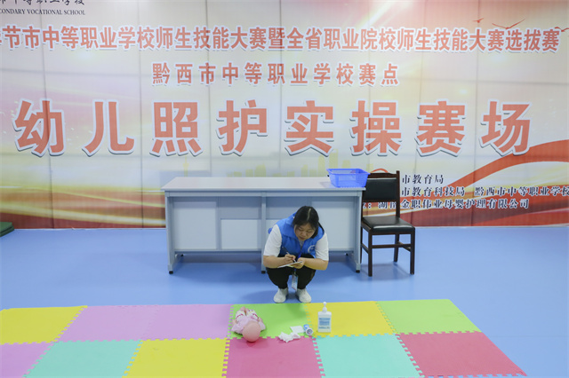 据了解,幼儿照护赛项分为理论考试和实操考试两部分,选手分中职学生与中职教师两组,以单场次个人赛方式进行。幼儿照护赛项主要考核参赛人员对幼儿照护生活照料、日常保健、疾病预防与护理、伤害预防与急救、早期教育活动策划与组织等理论知识及核心技能的掌握程度。旨在通过比赛,达到“以赛促教、以赛促学、以赛促改、以赛促建”的目的,促进专业和产业企业对接、专业课程内容和职业标准对接、教学过程和生产过程对接,加快贵州高素质技术技能型人才培养,全方位助力技能型社会建设。