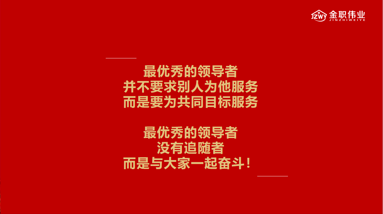 最优秀的领导者,并不要求别人为他服务,而是要为共同目标服务,最优秀的领导者,没有追随者,而是要与大家一起奋斗。德鲁克曾精辟地阐述了管理的本质:“管理是一种实践,其本质不在于知,而在于行;其验证不在于逻辑,而在于成果;其唯一的权威性就是成就。”作为领导者应高瞻远瞩,树立全局观念,积极承担责任,躬身入局,将自己视为团队的一份子,凡事亲力亲为,协同兄弟部门并肩作战,为企业目标达成而不懈奋斗,用结果说话!