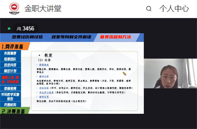 在参赛流程和方法方面,王磊老师通过流程图、表格等形式,条理清晰地向大家展示了参赛步骤,包括研读文件、参考历年获奖作品、组建团队、选取参赛内容、制定计划等,她强调,参赛作品必须有数据佐证,创新的教学模式和方法才能够大大增强学生的职业荣誉感,备赛是一个繁复的过程,教案的无数次练习和修改挑战着教师的心理素质和信念,此时此刻,唯有坚持才能看到胜利的曙光。