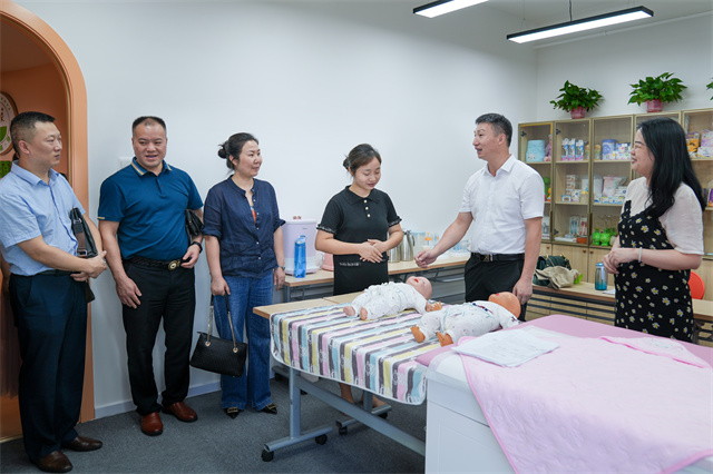 禹谦和一行参观了金职伟业集团旗下金职伟业&长沙民政职业技术学院家庭服务产业学院、培训学校、产教融合型门店、托育综合服务中心以及1+X幼儿照护实训基地,通过听取金职伟业集团总经理潘建明、金职伟业校长苏琼与长沙民政职业技术学院副校长王庆国的介绍及座谈会交流,深入了解了金职伟业各业务板块与工作成果。
