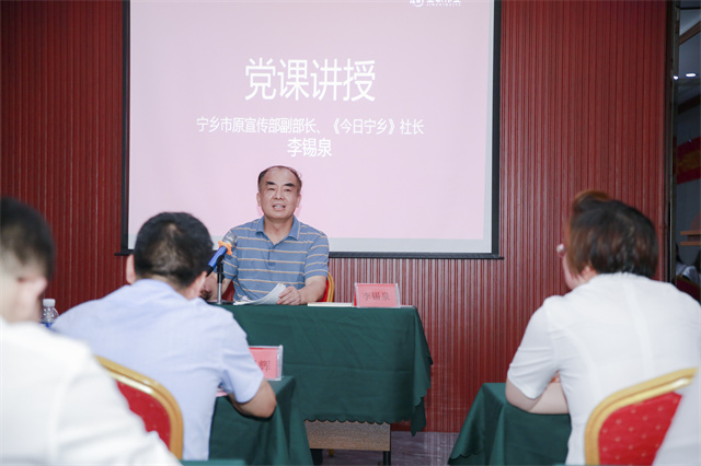 紧接着,全体同志聆听了由宁乡市原宣传部副部长、《今日宁乡》社长李锡泉主讲的一堂生动的党课。党课开始前,彭英董事长献上致辞,她提醒在场所有党员和金职人,幸福感是建立在责任和奋斗之上,要幸福一定要先拼搏,“我们所有金职人,要将企业目标、个人目标与中国共产党的宗旨永远地连在一起,相信在中国共产党的领导下,我们一定能够实现中国梦,金职梦,创业梦!”
