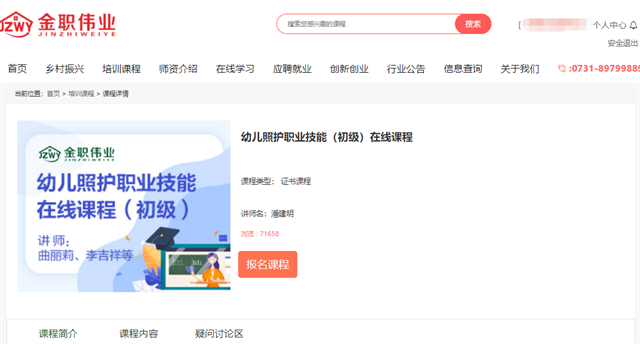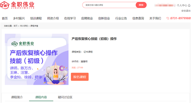 据了解,产后恢复、幼儿照护核心操作技能(初级、中级)线上课程由金职伟业联合双高校、行业、企业专家教授共同打造,用户注册登录金职伟业职业技能平台官网(https://www.jz1x.com/),进入培训就业平台或登录智慧职教MOOC学院,即可免费观看学习。旨在为各院校师生搭建丰富便捷的网络自学平台,实现优质教学资源共享。
