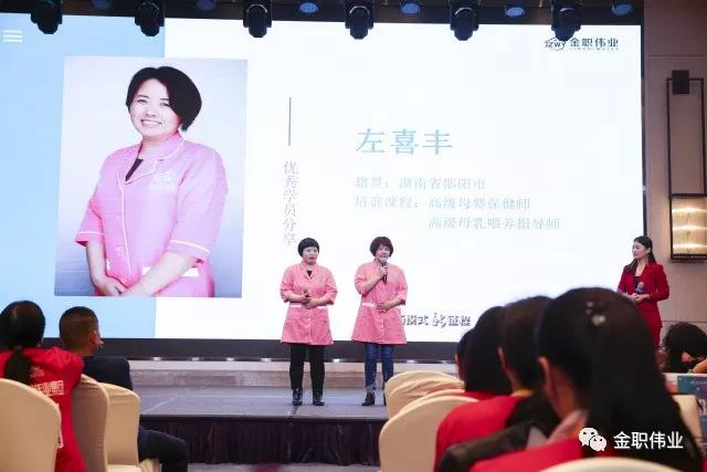 国家卫计委母婴培训教材编写成员、湖南产后康复技术委员会专家组成员、金职伟业研发骨干李姁铖老师进行了“四位一体打造综合母婴高级人才”主题分享。