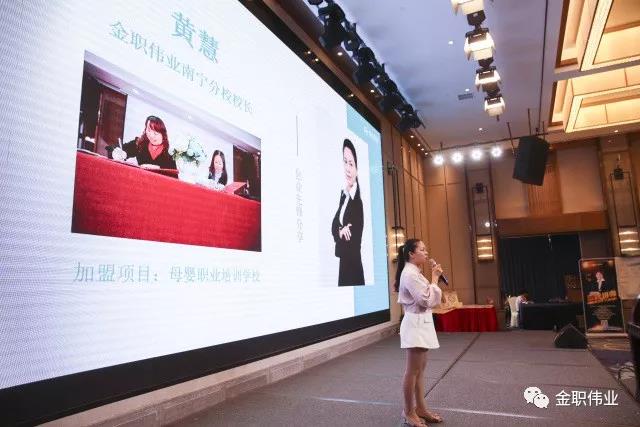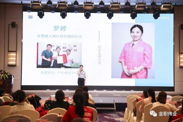 金职伟业南宁分校校长黄慧女士、金婴丽人邵阳店店长曾艳女士、金婴丽人长沙湘江世纪城店店长罗婷女士依次登台,讲述了她们的创业故事。南宁分校开业当日现场报名交费30余人,100余名学员预约学习名额;湘江世纪城分店2017年9月开始试营业,半年就已收回成本;邵阳分店开业当天吸引了100多位客户上门,数十位客户现场成交……
