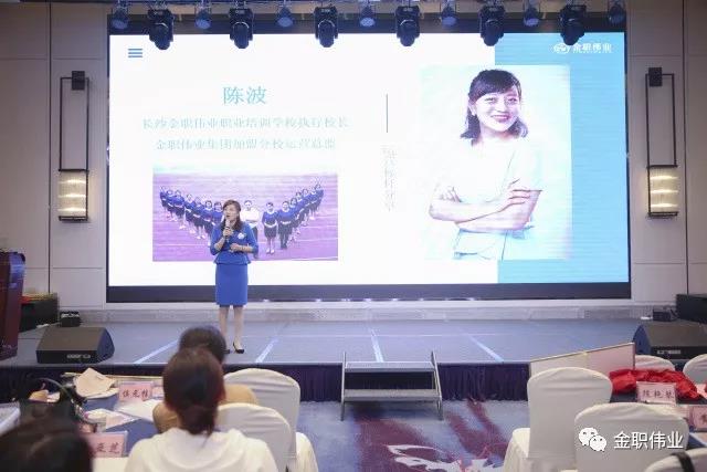 长沙市金职伟业职业培训学校校长、金职伟业集团加盟分校运营总监陈波女士作为运营先锋,分享了管理金职伟业直营学校的经验。