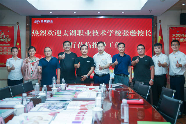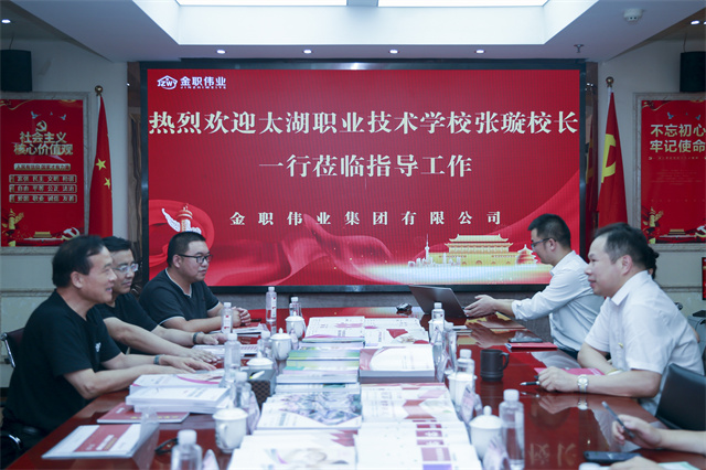 本次莅临金职伟业考察交流的领导有:太湖职业技术学校校长张璇、太湖职业技术学校副校长叶克华、太湖职业技术学校校企合作办主任章旺杰、太湖职业技术学校实训处主任余绍民、太湖职业技术学校实训处副主任马储林、太湖职业技术学校财务主管吴秀琴。