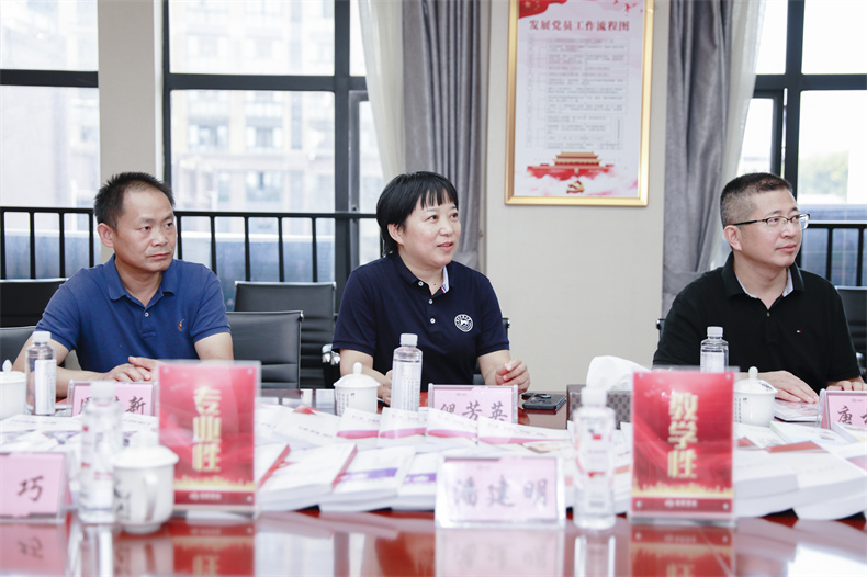 座谈会上,倪芳英肯定了金职伟业在技能培训、职业教育领域所取得的成果,并介绍了湖南师范大学工程与设计学院(职业技术学院)基本情况。她表示,双方在师资培养方面都有丰富经验与深厚实力,金职伟业依托于职业教育、1+X证书,在就业创业、企业实践方面比普通院校更具优势,双方各有所长、优势互补,在师资培训、企业实践等领域有广阔的合作空间。