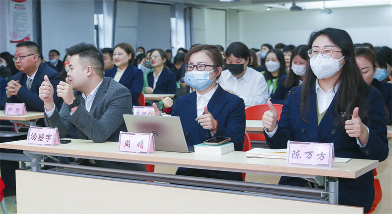 在新年的工作开始之际,原永州职业技术学院护理学院院长谢玉琳教授也为大家送上了新年寄语,她高度赞扬了金职人勤奋的工作态度、蓬勃向上的精神面貌,她强调,2023年是二十大开局之年,也是职业教育提质培优的关键之年,我们要抓住时机,把握政策红利,深度对接院校,实现年度目标的突破。