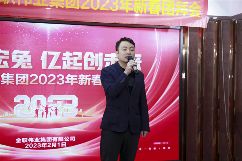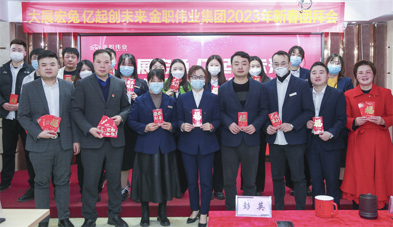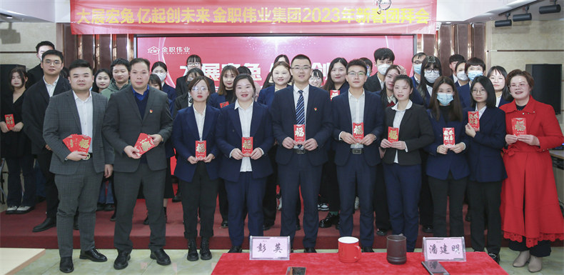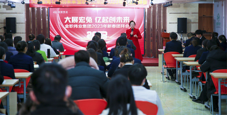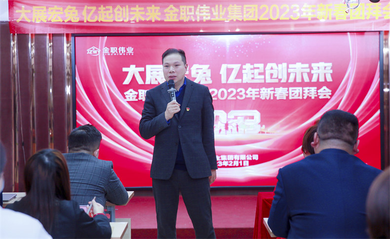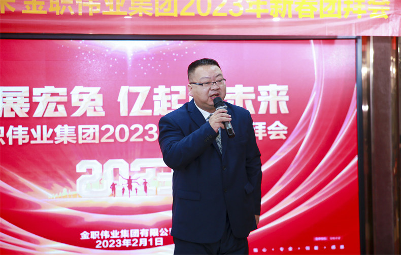 2023年2月1日上午,金职伟业集团举行“大展宏兔 亿起创未来”金职伟业集团2023年新春团拜会,全体金职人欢聚一堂,欢庆新年开门红,开启2023年的新征程。