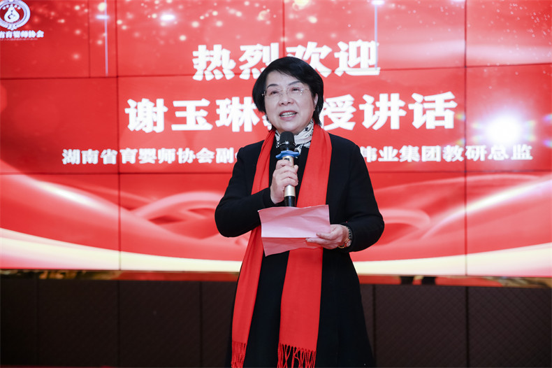 金职伟业集团有限公司教研总监、原永州职业技术学院护理学院院长、湖南省育婴师协会副会长谢玉琳教授在致辞中总结了2022年的行业情况,并详细分析了2023年的形势。她鼓励大家坚定信心,在今年摒除疫情影响、政策扶持的大好形势下,母婴行业将更加焕发活力。