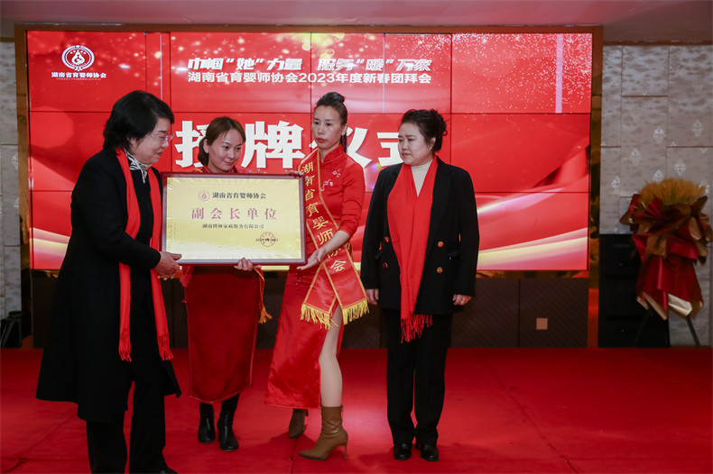 随后,湖南省育婴师协会正式向湖南博琳母婴家政服务有限公司授予了“湖南省育婴师协会副会长单位”牌匾。
