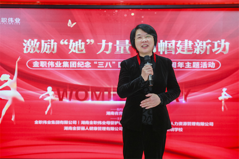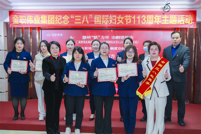 为庆祝第113个“三八”国际妇女节,充分发挥先进典型示范带动作用,激励广大女性见贤思齐、勇担使命、接续奋斗,为家庭服务行业高质量发展贡献巾帼力量,3月8日,金职伟业特举办“激励‘她’力量 巾帼建新功”国际妇女节主题活动,为金职伟业全体女性员工、金职伟业职业培训学校学员送上节日祝福。