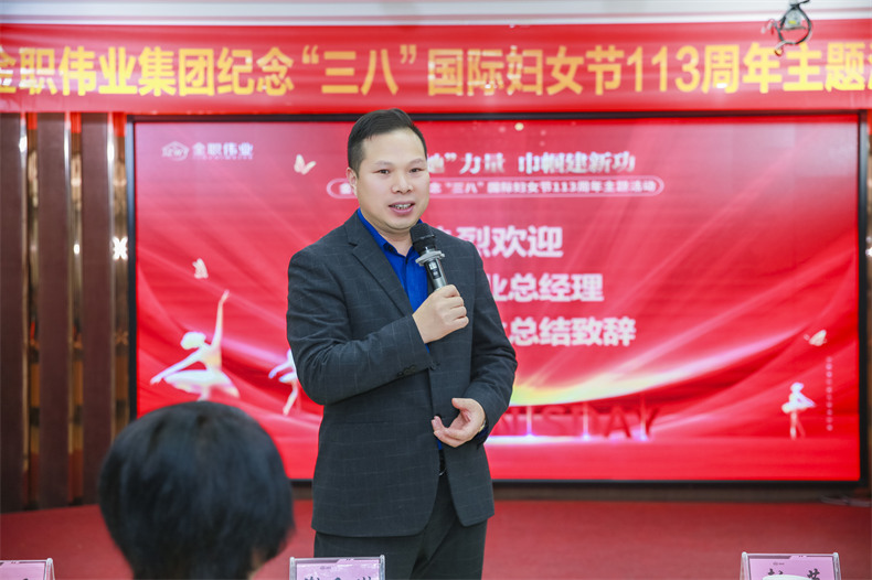活动最后,金职伟业总经理潘建明带领公司男职工团队为所有女性同胞送上了精美的小礼品,潘建明提到,“金职伟业的发展离不开各位女性同胞的辛勤努力,金职伟业的辉煌也少不了你们的锐意进取与顽强拼搏,未来,让我们与时代同频,与家庭共进步、与企业共发展,共同绘就金职伟业的美好明天。”