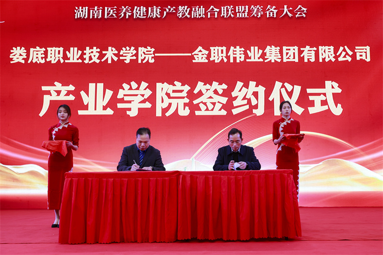 3月25日,湖南医养健康产教融合联盟筹备大会在娄底职业技术学院顺利开启。会上,金职伟业与娄底职业技术学院签订“金职伟业家庭服务产业学院”共建协议,并聘请了一批产业学院导师。