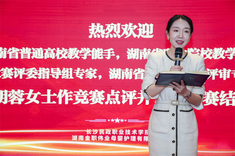 金职伟业还特邀请湖南省普通高校教学能手、长沙民政职业技术学院教学咨询与指导团队专家胡蓉对本次竞赛作专家点评。胡蓉老师充分赞扬了各参赛队伍的优异表现,并就教学内容提出了专业建议,“教学设计是教育活动中至关重要的一环,它贯穿于教学的始终,是教师实施教学的重要依据。我们要根据教学目标合理设计教学内容,聚焦一个知识点,做到课程内容有序而充实。”