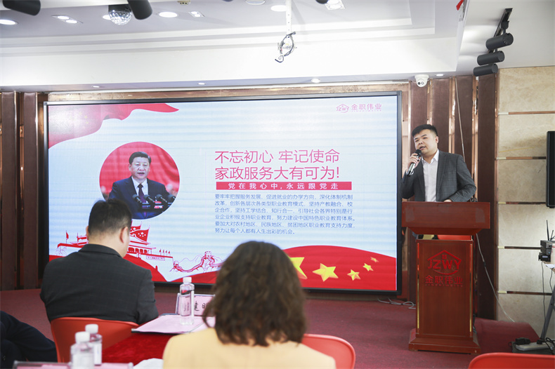 会议伊始,金职伟业总经理潘建明率先发言。“非常感谢各位领导、老师对金职伟业的大力支持和信任。在后续合作中,金职伟业定当竭尽全力,积极整合双方以及行业最优资源,产教精准对接,全面助力职业院校人才培养。”随后,金职伟业总经理助理汤曌宇进一步汇报了金职伟业在1+X证书、校企合作、产教融合方面取得的成果。
