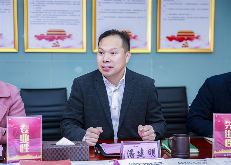 随后,双方举办了座谈会,金职伟业总经理潘建明主持会议。