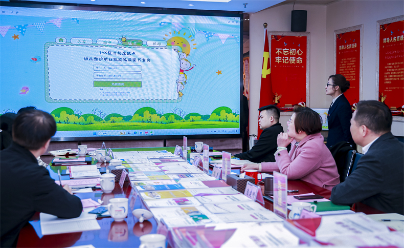 下午,金职伟业董事长助理兼品牌运营总监周娟还详细汇报了金职伟业开发的中国婴幼儿照护服务网“1+X婴幼儿照护服务证书展示模块”建设情况。据了解,中国婴幼儿照护服务网由国家卫生健康委人口家庭司指导,国家卫生健康委流动人口服务中心主办,是集卫生健康行政主管部门对全国托育机构的监督管理、托育家长获取机构信息及育儿知识、从业人员提高管理和专业技能水平为一体的信息服务平台,其中由金职伟业承担“1+X婴幼儿照护服务证书展示模块”的建设工作,其涵盖了评价组织、证书背景、证书介绍、课程资源、专业教材、在线练习等版块。该网站将于4月中旬正式上线,以赋能智慧妇幼健康产业学院发展。