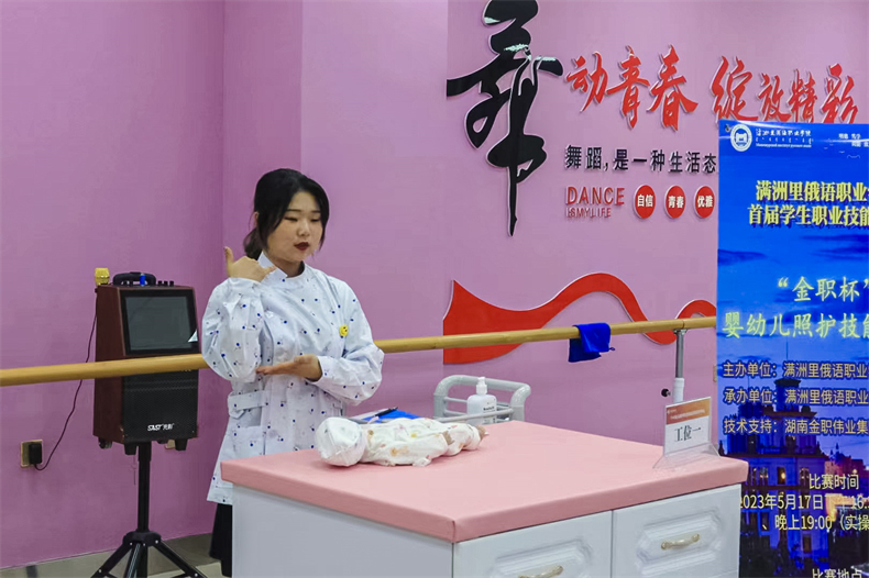 为贯彻落实习近平总书记对职业教育工作做出的重要指示和全国职业教育大会精神,大力发展职业教育,坚持教育与实践相结合,培养更多高素质技术技能人才,积极响应职业教育宣传月活动,近日,由满洲里俄语职业学院教务处主办、中文系承办,金职伟业集团有限公司(以下简称金职伟业)提供技术支持的“金职杯”婴幼儿照护技能大赛顺利进行。