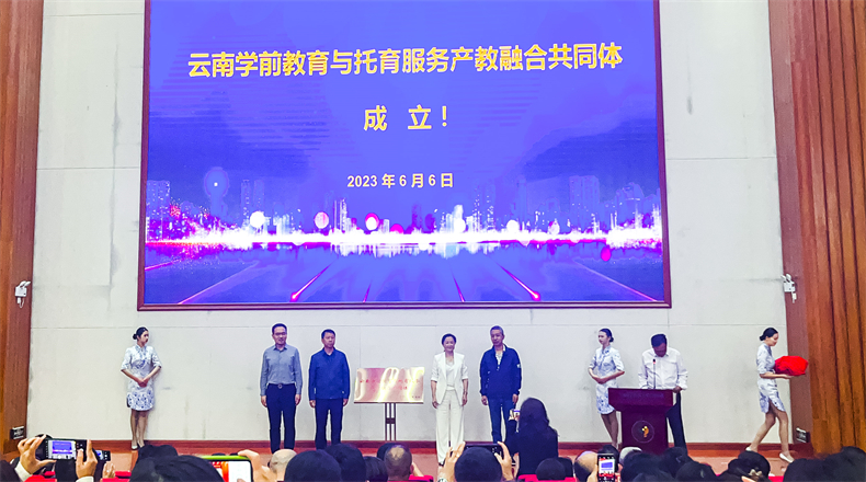 为深化和落实以教助产、以产促教、产教融合、产学合作,促进优质资源开放、共享,发挥职教优势,6月6日,云南学前教育与托育服务产教融合共同体(以下简称共同体)成立大会暨第一届理事会在昆明幼儿师范高等专科学校成功召开,作为共同体成员单位,金职伟业集团有限公司(以下简称金职伟业)总经理潘建明受邀参会,并成功当选共同体副理事长。