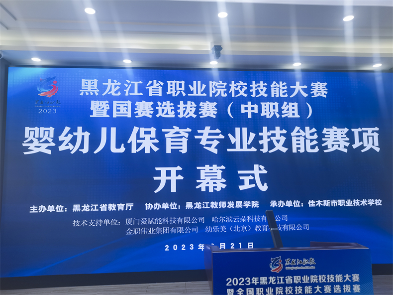 为实现以赛促教、以赛促学、以赛促改、教赛融合,推进职业教育教学改革,全面提高中等职业学校教育教学质量,近日,由黑龙江省教育厅主办、佳木斯市职业技术学校承办、金职伟业集团有限公司等提供技术支持的黑龙江省职业院校技能大赛暨国赛选拔赛中职组婴幼儿保育赛项,在佳木斯市职业技术学校顺利举办。黑龙江省教师发展学院职成研培中心副主任路艳娇,黑龙江省中等职业学校技能大赛办主任王全力,佳木斯市教育局党组书记局长孙秋丽、二级调研员于庆澎、四级调研员王迪,佳木斯市教师发展学院党委书记胡迎秋等出席开幕式。