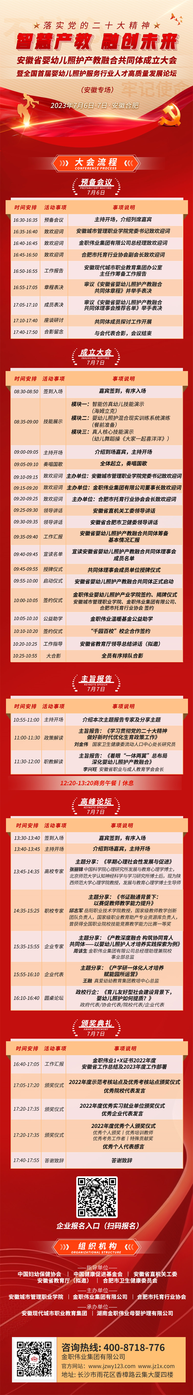 为贯彻中共中央办公厅 国务院办公厅印发《关于深化现代职业教育体系建设改革的意见》、教育部等四部门印发《关于在院校实施“学历证书+若干职业技能等级证书”制度试点方案》、国务院《关于促进3岁以下婴幼儿照护服务发展的指导意见》等文件精神,积极响应国家卫生健康委办公厅《关于开展全国托育服务宣传月活动的通知》,落实好中共安徽省办公厅、安徽省人民政府办公厅《关于印发〈就业促进行动方案〉等“暖民心行动方案”的通知》、安徽省卫生健康委《安心托幼行动(托育服务)实施方案》关于托育服务工作的目标任务,助力人才培养全面深入推动 1+X 证书制度试点工作,不断激发新时代托育服务发展新动能,推动婴幼儿照护产业高质量发展,在中国妇幼保健协会、中国健康促进基金会、安徽省直机关工委、安徽省教育厅以及合肥市卫生健康委员会指导下,安徽城市管理职业学院联合金职伟业集团有限公司,决定于7月6日-7日共同举办主题为“智慧产教 融创未来”安徽省婴幼儿照护产教融合共同体成立大会暨全国首届婴幼儿照护服务行业人才高质量发展论坛(安徽专场),同时召开金职伟业1+X证书2022年度工作总结表彰大会。