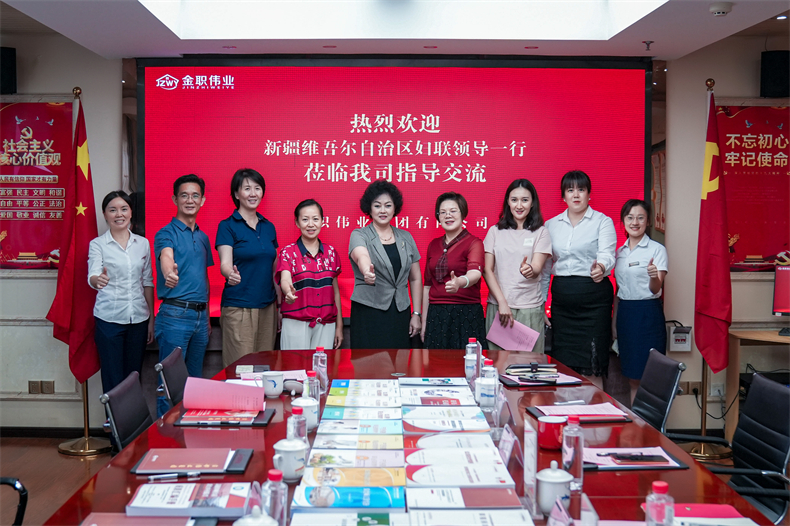7月21日,新疆维吾尔自治区妇联党组成员、副主席帕提古丽·艾比布一行莅临金职伟业考察调研,湖南省妇联二级巡视员陈敏、金职伟业集团有限公司董事长彭英等陪同调研。