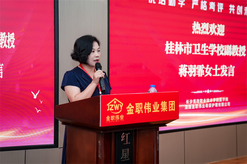 为加快推进职业教育“双师型”教师队伍建设,7月22日,1+X幼儿照护职业技能等级证书2023年第12期师资及考评员培训班正式开班。桂林市卫生学校副教授蒋羽霏,金职伟业集团有限公司董事长彭英、院校事业部副总监易斌出席开班典礼并讲话。