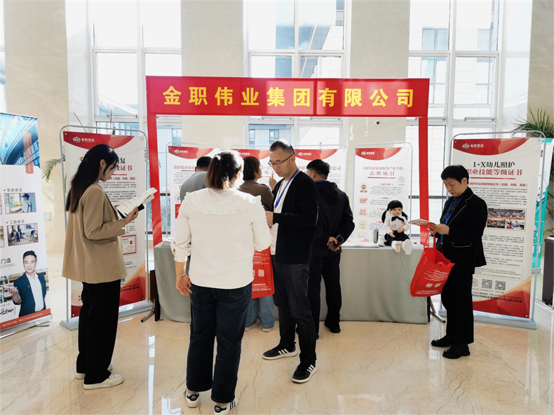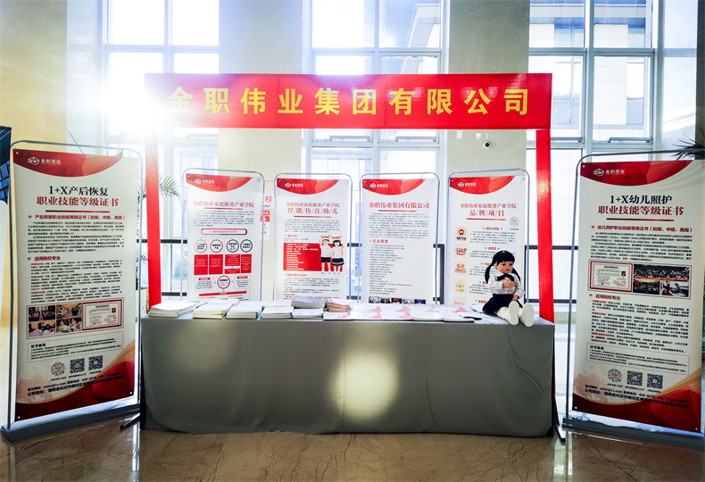值得一提的是,以此次成立大会为契机,金职伟业等多家家政领域龙头企业现场摆设展台,展示、分享家政行业最新的服务、产品、科技,展示了家政服务业产教融合的新成就、新形象。其中,金职伟业集中展示了校企合作开发的幼儿照护与产后恢复、家政行业、托育行业、课证融通系列教材,自主研发的智能仿真幼儿等产品,为参观人员详细分享了金职伟业在携手院校打造“金专、金课、金师、金地、金教材、金赛”,推进职业教育数字化转型等方面的尝试与成效。