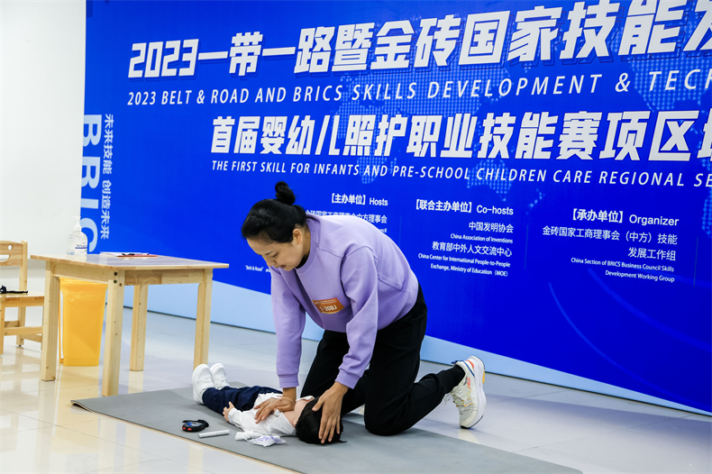 10月20-23日,2023“一带一路”暨金砖国家技能发展与技术创新大赛首届婴幼儿照护职业技能赛项区域选拔赛在重庆城市管理职业学院顺利举办。来自湖南、四川、重庆的中高职院校55支代表队伍150余名师生选手在为期三天的比赛中同台竞技,开展“带娃”技能大比拼。大赛期间,金职伟业自主研发的智能仿真幼儿作为比赛指定模型产品,亮相婴幼儿回应性照护技能考核与测评项目赛场,助力大赛科学化、专业化开展。