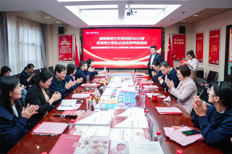 11月7日,湖南师范大学博士生导师常思亮教授、高晓清教授,校友总会副秘书长邝洁以及2023级教育博士生等一行20余人,赴金职伟业集团有限公司考察调研。湖南省职成教育学会秘书处办公室主任陈妙龄,金职伟业董事长彭英、总经理潘建明等陪同。