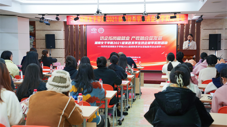 为深入推动校企合作,培养家庭服务领域的高层次人才,推动行业高质量发展,11月14日,湖南女子学院商学院院长、家政企业运营课程授课教师彭云飞,商学院教师陈舜、李小芳携2021级家政系专业全体学生30余人于金职伟业集团有限公司(以下简称“金职伟业”)进行访企研学活动。