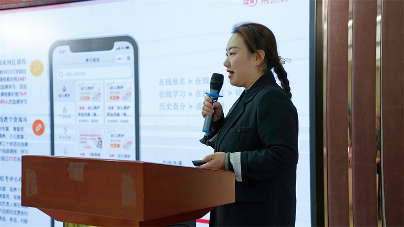 访企研学活动交流会上,金职伟业实体运营中心家庭服务部经理闫文杰向在座师生详细讲解了金职伟业集团文化与运营模式,分享了公司近年来的发展成果,阐述了金职伟业“一证书、一论坛、一联盟、一大赛、一学院、一基金”的六一工程,赋能三教改革,打造优秀评价组织的六性标准:专业性、先进性、育人性、教学性、规范性、认可性,进一步增进了大家对金职伟业的了解。