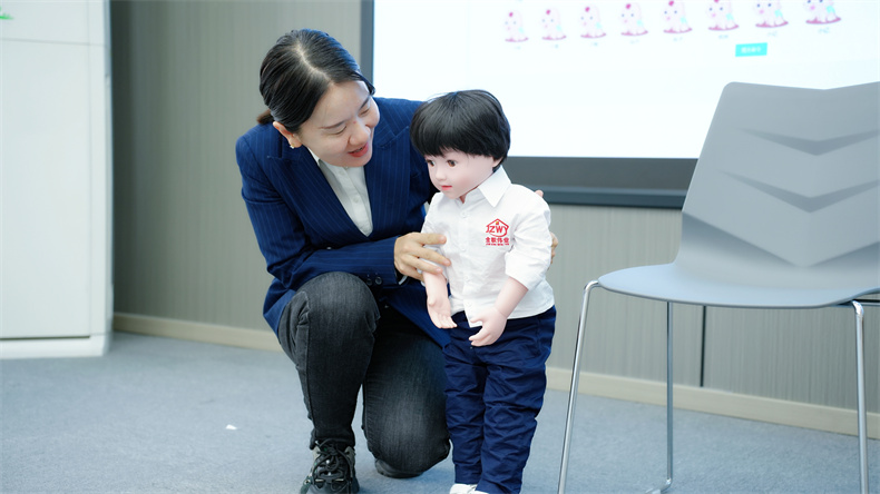 湖南女子学院师生一行相继参观了金职伟业办公场所、金职伟业旗下职业培训学校产教融合型门店、托育综合服务中心、1+X幼儿照护实训基地、金职伟业家庭服务产业学院,并于金职伟业总部运营中心观看智能仿真幼儿操作过程与婴幼儿照护混合现实实训系统[MR]演示。
