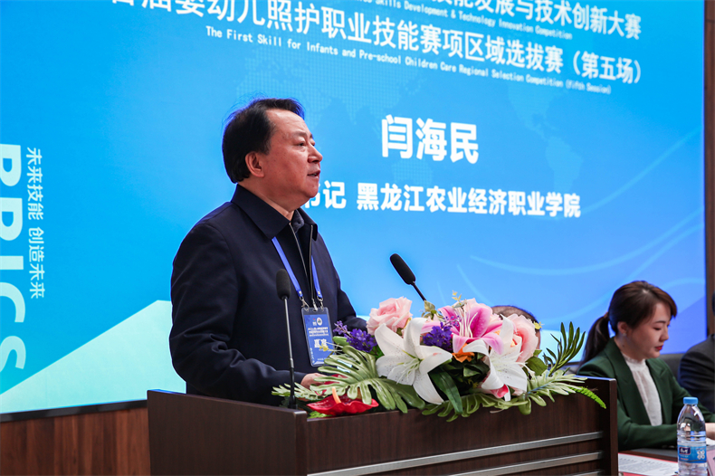 最后,黑龙江农业经济职业学院党委副书记、院长张继忠宣布2023一带一路暨金砖国家技能发展与技术创新大赛首届婴幼儿照护职业技能赛项区域选拔赛(第五场)开赛。